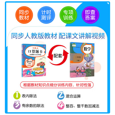 这本书精心选取了4600道数学口算题,并根据教材所含知识点进行细分,科学安排每天的训练内容,让训练更具针对性。