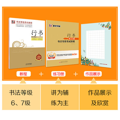 这套书精选了书法等级考试教程中的笔画、偏旁及例字,并设有大量描红和临写格,旨在让学生通过反复的练习,进一步提高书法水平。