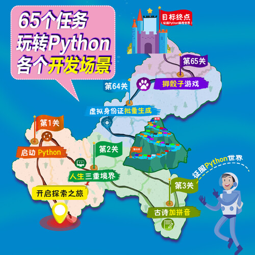 书中设置了65个关卡和海量应用场景,可以说Python各个开发场景应有尽有,直击Python精髓,快来探索编程世界吧。