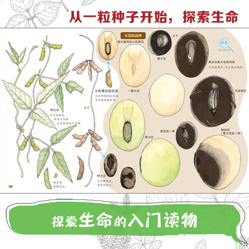 按照真实比例还原不同种子形态,直观形象,同时运用细腻的写实手法,科学与艺术巧妙结合,让孩子真正感受万物生长的奥妙。