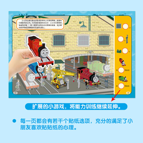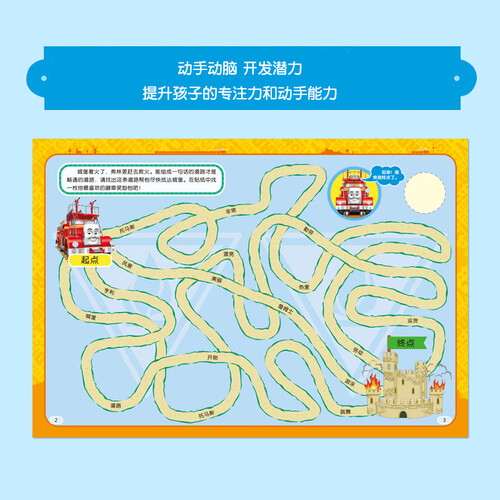 将贴纸与找不同、连线、涂色、迷宫等形式多样的益智游戏相结合,让小朋友们在游戏中动手又动脑,能全面开发大脑思维。