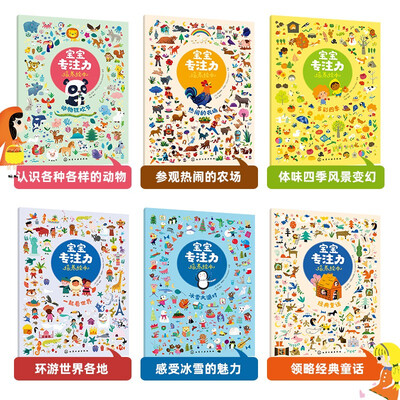 这套书兼具专注力培养和启蒙认知双重功能,每册一个主题,在色彩鲜艳的画面中寻找和认识事物,符合宝宝的认知特点,培养专注力。