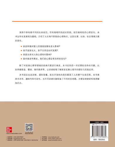 这本书以毕生发展观为基础,结合图文并茂的形式,在向读者展现人的整个生命历程的同时,还便于读者轻松的理解知识点。