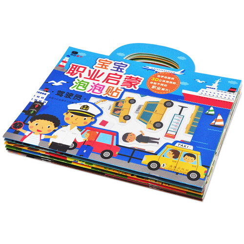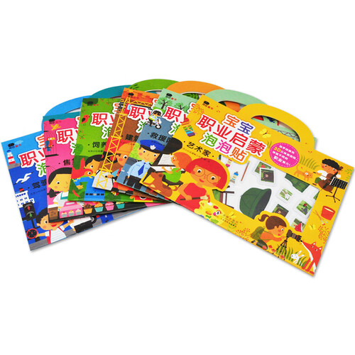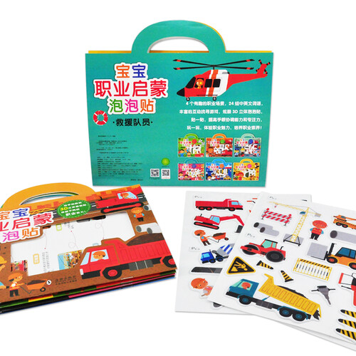 这是一套关于职业的认知书,通过24个场景全面介绍了6类职业。提供了大量精美的泡泡贴,还配有英文伴读音频,便于小读者学习。
