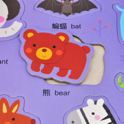 有趣的拼图玩法,能够培养宝宝观察力、辨别力及动手协调能力。中英文标注,培养宝宝中英双语启蒙和认知能力。