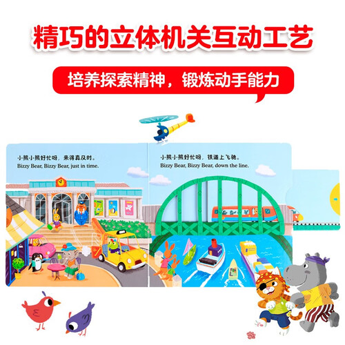 有趣好玩的故事配上丰富的互动机关,宝宝用小手推一推、转一转、滑一滑,就能看到意想不到的惊喜,锻炼了小手的灵活性。