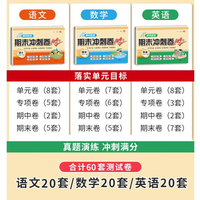 这套期末冲刺卷兼顾语文、数学、英语三大科目,包含单元卷、专项卷、期中卷和期末卷,题量充足,全面覆盖了考试会涉及的知识点。