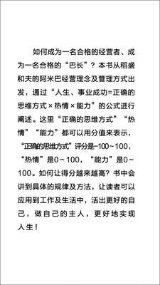 本书特别从稻盛和夫的阿米巴经营理念和方式出发,通过人生、事业成功方程式、正确的思维方式进行详细阐述。