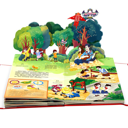 横向展开,大尺寸立体全景页,立体机关拉拽、翻翻页、转盘,趣味性互动性很强,还可以提高宝宝的动手能力。