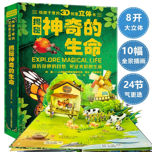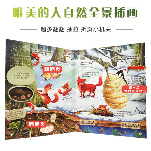 此书设计了翻页、抽拉、立体全景的互动机关,让孩子翻开书就如同走进了自然博物馆。内容涵盖了24节气、动植物的生活习性等。