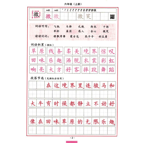 本书适合于六年级的学生,和课本相配套,同步学生的学习状态,让学生规范书写汉字,并附送视频讲解,直观体验教学。