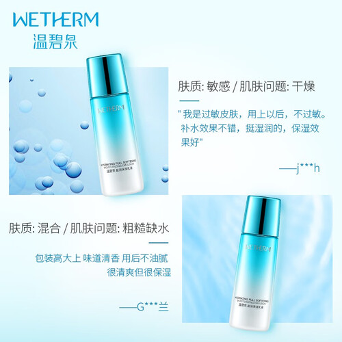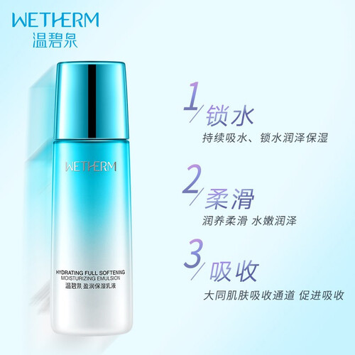 温碧泉保湿乳液,轻盈乳液质地,多重水润精粹,小分子渗透,密集滋养,温和舒适。按压式瓶口设计,干净卫生。推荐大干皮使用。