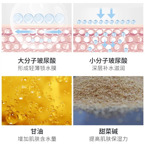 可以帮助肌肤打开吸收通道,促进浓缩玻尿酸成分快速进入到肌肤之中。同时还能牢牢的锁住肌肤水分,带来长效的保湿效果。