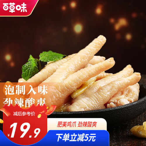 爱吃鸡爪的你,百草味这款泡椒凤爪一定别错过!肉质肥嫩的鸡爪,配上黄色小米椒泡制,简直骨里留香,极其爽辣,妥妥肉食者福音。