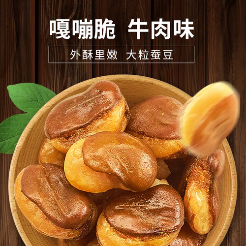 选用江南、云南两地优质蚕豆,颗粒更饱满,口感更香浓。搭配牛肉口味粉末,增加鲜香味道,更加有食欲。