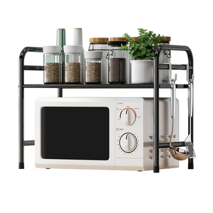 创造收纳新典范,烤漆多用途微波炉置物架,妥妥的承上启下,让家低调不失格调。两档可调节,适合不同微波炉尺寸。