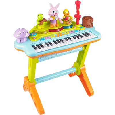 支架可360度旋转,可倾斜,便于边弹边唱,满足孩子的需求。趣味演奏组合设计,小动物会跟随音乐节奏一起跳舞。