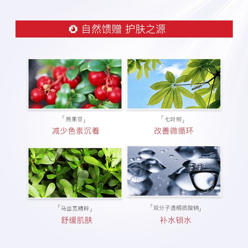 蕴含熊果苷精粹,能够调节肤色不均,光泽透亮美肌,并深润补充水分。双分子透明质酸钠,补水锁水,令肌肤吹弹可破。