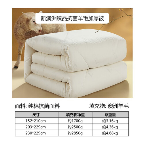采用优质的澳洲羊毛,纤维质感柔软,制作的被子蓬松不易板结,吸湿透气,让睡眠干爽不闷热。