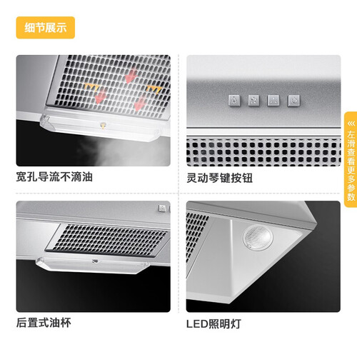 一体成型的集烟腔设计,不仅美观耐用,更加便于日常清洁,宽孔导流滤网更加快速分离油脂,避免滤网堵塞。