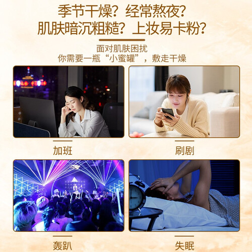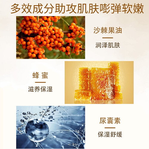 采用天然蜂蜜、银杏叶、忍冬花灯提取物,可改善毛孔粗大,保湿抗皱,增强皮肤弹性,令肌肤清新自然有活力。