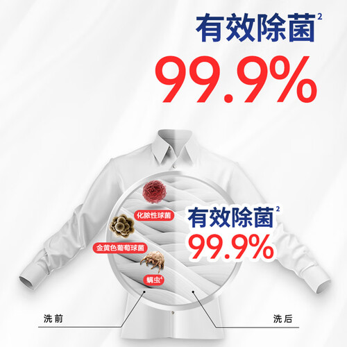 含威露士消毒成分,轻松除去衣服上的螨虫与细菌,带给家人健康洁净的呵护。经典有氧配方,释放去污力,让选衣变得轻松简单。