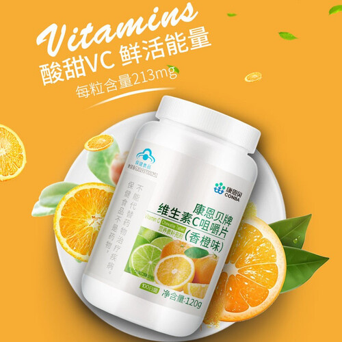 香橙果味的维生素C咀嚼片,含入口中酸甜口感在舌尖徘徊,冲击着味蕾,透露出清新舒爽滋味,让人体感官更舒适。