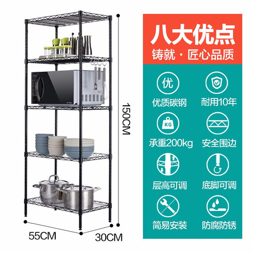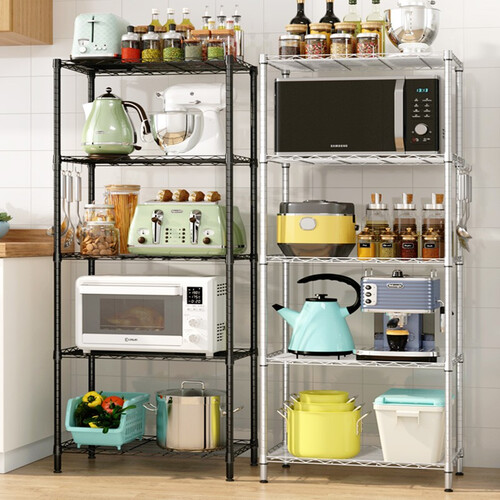 采用了五层的架体结构,满足不同物品的存储需求。经环保喷漆工艺处理,放置于潮湿环境中,不易生锈损坏。