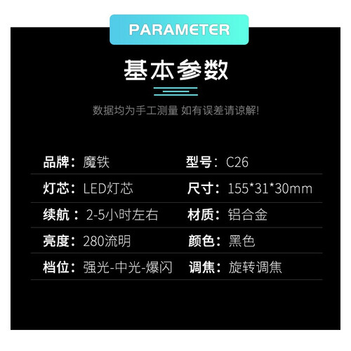 魔铁 led强光手电筒