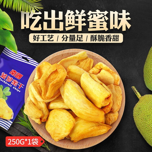 酥脆香甜的菠萝蜜干,口感疏松齿颊留香,甜蜜感人。浓郁的菠萝果香味耐嚼不腻,果肉非常饱满,颜值高惹人爱。