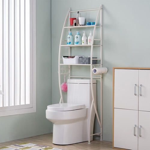 马桶上方的置物架,可以节省浴室卫生间的空间,再多的沐浴卫生用品也能安心的放置。加粗的管径,大物件也能随心放。