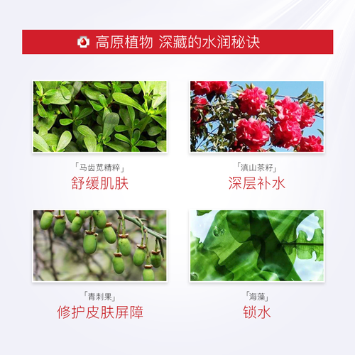 采用云南天然山茶花,深层滋润皮肤,使面部肌肤更加光滑。富含春榆提取物,舒缓肌肤,锁住皮肤表面水分,持久保湿。