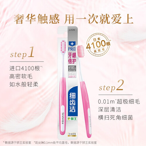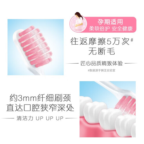 高达4100的高密度软毛刷头,在深层次清洁的同时又带给牙龈舒适呵护。贴合手型的防滑设计,不易脱手掉落,美观又实用。