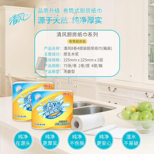 进口纤维材质,韧性更强,遇水不易破;纸巾拥有多层结构,质地厚实紧密,方便耐用;可代替抹布使用,一擦即净。