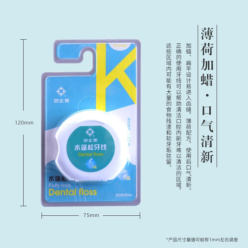 采用便捷的盒装设计,能容纳50米长的牙线,实用又方便。遇水蓬松的丝线,扩大清洁牙龈面积,从而呵护牙龈健康。