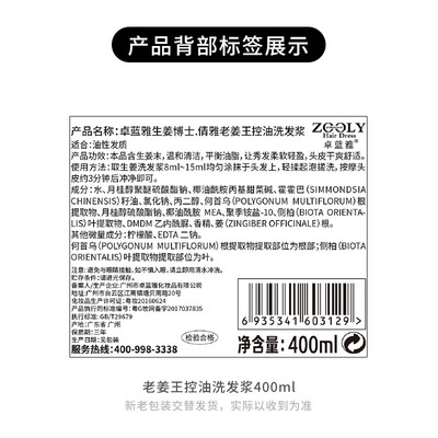 添加了霍霍巴油成分,可以调节头皮的水油平衡,控制油脂的分泌,令秀发更清爽蓬松,而生姜的成分,可以缓解脱发。