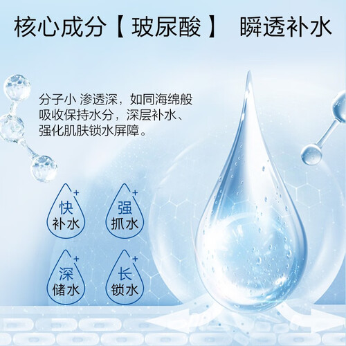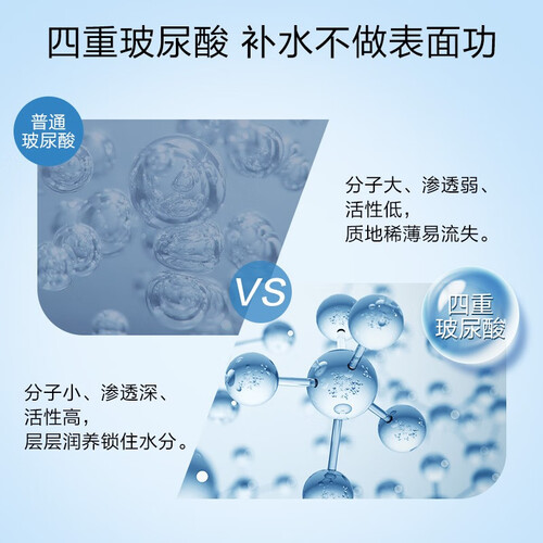 蕴含四重玻尿酸,密集渗透打开肌肤的水分吸收通道;形成紧密的保水墙,添加珍珠多肽和维生素C衍生物,加强肌肤修护焕发光彩。