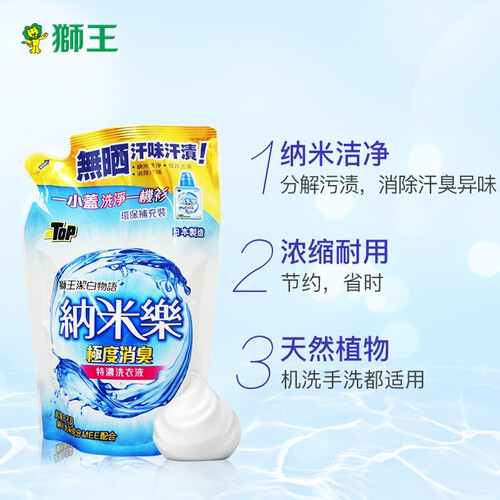 采用了纳米洁净技术,能够十分有效地去除异味,让衣服更加的干爽清新。采用了浓缩型的配方,更加的经久耐用。