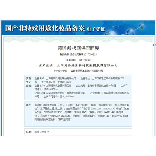 亲肤服帖膜布,丰富精华液,深层滋润有效缓解肌肤干燥,结合滇山茶精华,能够牢牢锁住水分,令肌肤光滑细腻。