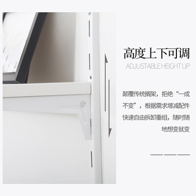 隔板增加三聚氰胺贴面,带有磨砂效果,增加摩擦力防止滑落。冷轧钢板支撑,材质坚硬不易变形,放置重物不打晃。