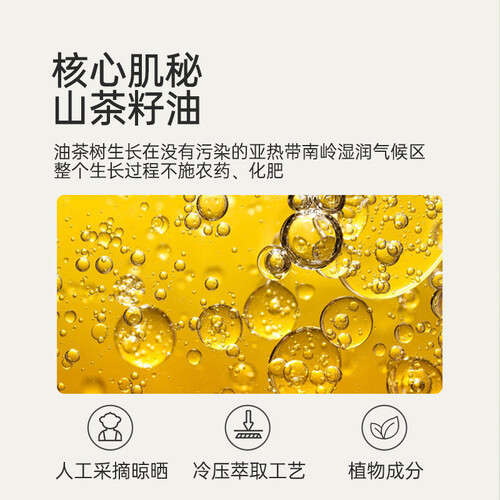 蕴含天然山茶油精华,涂抹在肌肤上以后,滋润补水的同时,还能锁住水分,避免流失,另外采用亲和配方制成,温和不刺激肌肤。