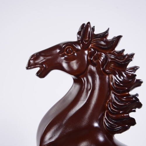 昂首奔袭的骏马,如同风驰电掣一般,寓意着马到成功良好祝福,摆放室内是成功的象征,传统艺术雕刻工艺,线条层次分明色泽醇厚。