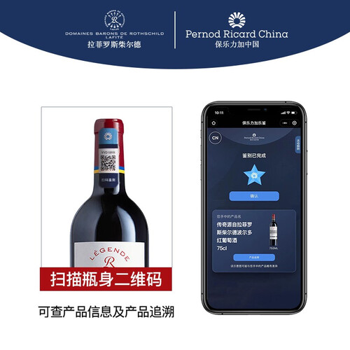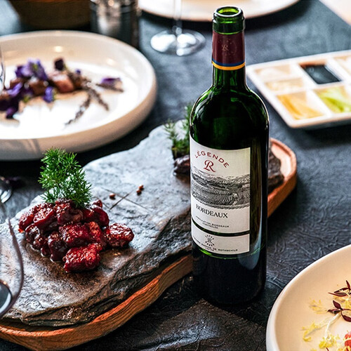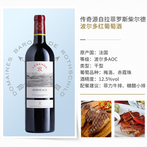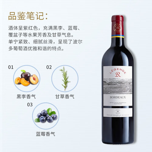 拉菲波尔多红葡萄酒,酒体呈深红色泽,香气浓郁丰富。口感丰富饱满,单宁结构优雅,回味伴有木香及辛香的气息。