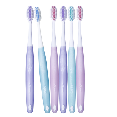 适合正畸人群使用的软毛牙刷,它选用杜邦丝+磨尖丝制作,凹槽设计更适合正畸人群清洁牙齿,柔软不伤牙龈。