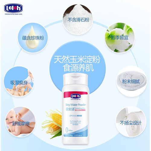 天然的玉米淀粉成分,不含有滑石粉,迅速吸收水分让皮肤更清爽,蕴含珍珠粉配方,温和亲肤,能够舒缓刺痒的肌肤。