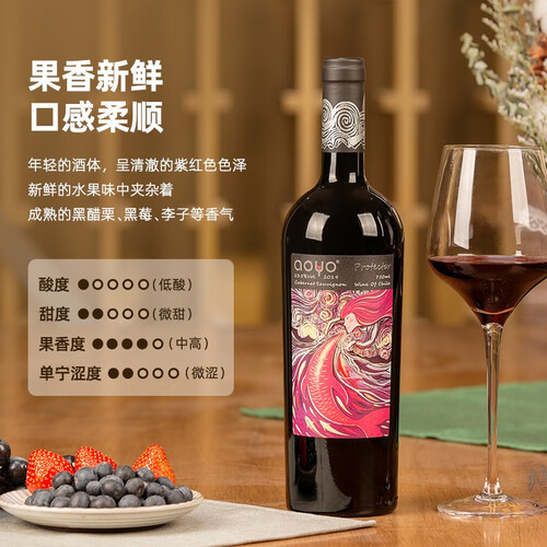 呈红宝石色泽,新鲜的水果味中夹杂着成熟的黑莓、李子香。淡淡的回甘,让人喝完倍觉舒适。