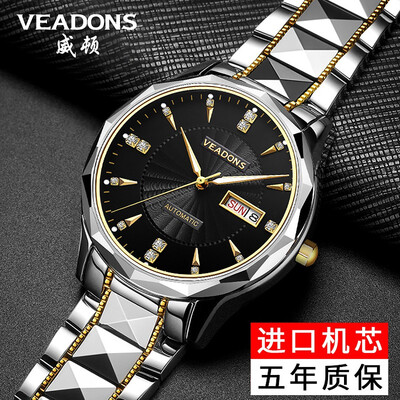 威顿钨钢商务防水夜光多功能腕表