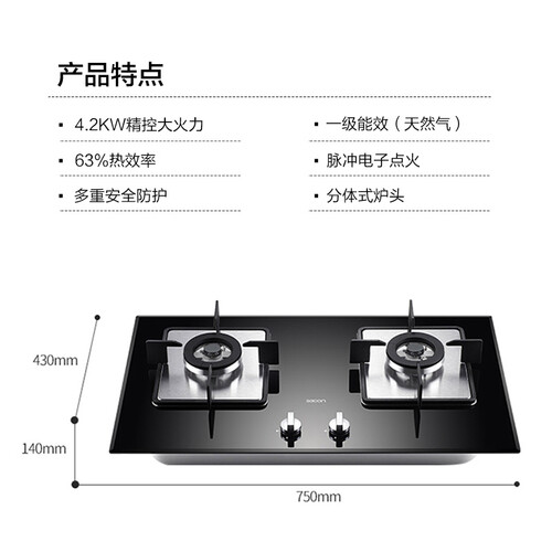 一级能效,节能省气,提高资源利用率;多重防护,保障使用的安全性;超大火力,提高做饭效率,减少等待时间。