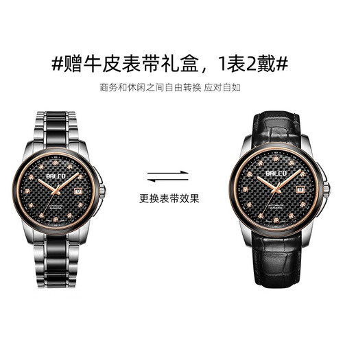 拜戈 休闲真钻石陶瓷机械男表