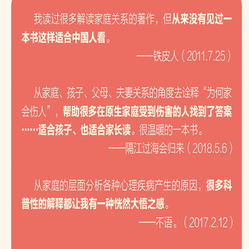 本书为心理学专家武志红的经典畅销书,深入剖析中国家庭的运行机理,为家庭关系所困的家庭进行自我治愈,寻求更多幸福和自由。